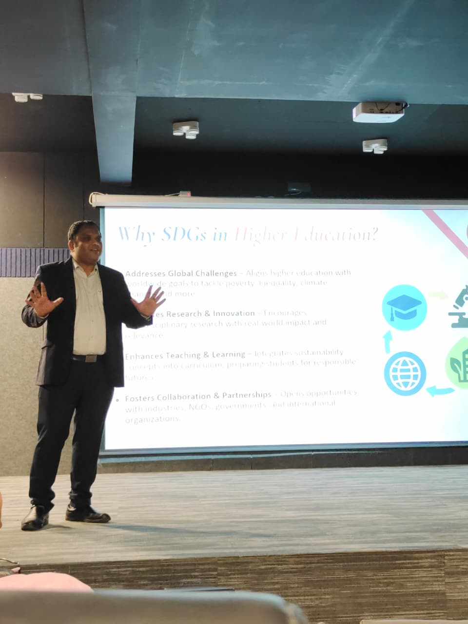 Dr. Nagendra Kukkadapu, Founder and Director of Research Heights Foundation (RHF), successfully delivered a Research Talk on the “Implementation of SDGs in Higher Educational Institutions” at Hyderabad Institute of Technology and Management (HITAM). He emphasized the vital role of the 17 Sustainable Development Goals (SDGs) and explained how acting locally within campuses and communities can create measurable global impact. Through real-world examples, he demonstrated how HEIs can become drivers of sustainable change by aligning their teaching, research, and extension activities with the SDG framework.