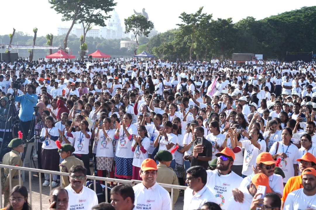 The sight was electrifying - a sea of white T-shirts behind the sparkling waters of Hussain Sagar, as the youth of Telangana marched forward with banners of sustainability, innovation, and nation-building. Their chants of "Youth for 2047, Youth for SDG!" echoed across Necklace Road, embodying hope, energy, and shared purpose.