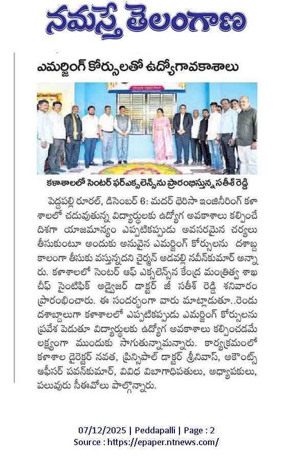 The TRIIMPACT SDG Centre of Excellence, a flagship initiative of Research Heights Foundation (RHF), was inaugurated at Mother Theresa College of Engineering & Technology (MTEC), Peddapalli — marking a major milestone in strengthening sustainability, research, innovation, and community development across higher-education institutions in Telangana.